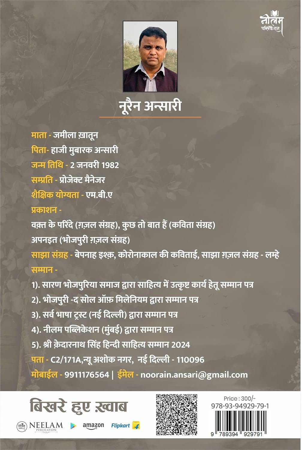 “बिखरे हुए ख़्वाब” मेरा ग़ज़ल संग्रह है जो दिल की गहराइयों से निकली भावनाओं का प्रतिबिंब है। इस संग्रह में, मैंने अपने अनुभवों, विचारों और जीवन के विभिन्न पहलुओं को ग़ज़लों के माध्यम से प्रस्तुत किया है। ग़ज़ल लेखन मेरे लिए सिर्फ एक साहित्यिक प्रयास नहीं है, बल्कि यह आत्मा की अभिव्यक्ति का माध्यम भी है। हर ग़ज़ल में मैंने अपने दिल की धड़कनों को शब्दों के जाल में बुनने की कोशिश की है। ये ग़ज़लें जीवन के सुख-दुख, प्यार-मोहब्बत और दिल की उलझनों को सहजता से बयां करती हैं। ग़ज़ल लेखन का सफर मेरे लिए खुद को जानने और समझने का एक जरिया बना। “बिखरे हुए ख़्वाब” में शामिल ग़ज़लें मेरी अपनी जिंदगी के पन्नों से ली गई हैं, जिन्हें मैंने दिल से जीया है और फिर कलम के माध्यम से कागज पर उतारा है।
