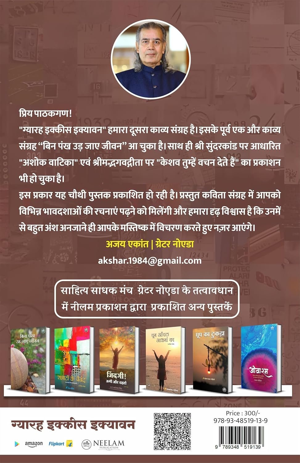 मेरा प्रस्तुत कविता संग्रह “ग्यारह इक्कीस इक्यावन” मेरी काव्य विधा का दूसरा संग्रह है, अभी एक काव्य संग्रह “बिना पंख उड़ जाए जीवन” आपके सम्मुख आया था।