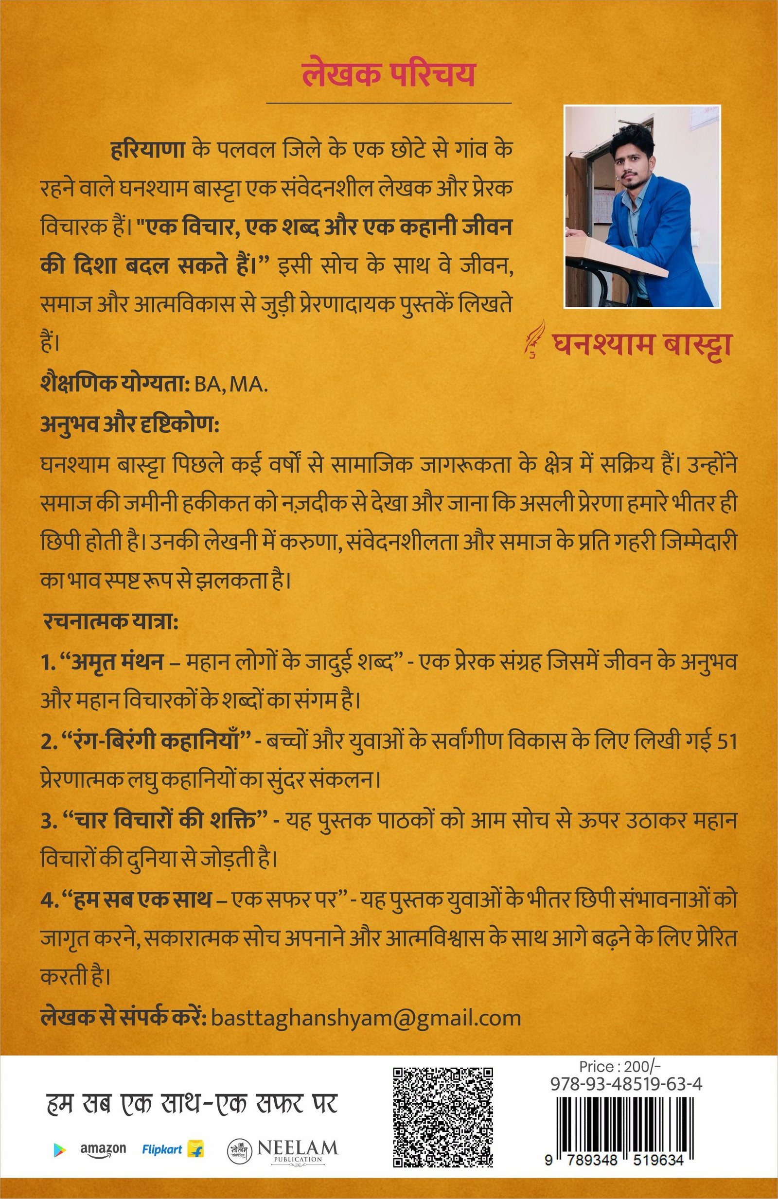 इस पुस्तक में कहानियों, विचारों और अनुभवों के माध्यम से यह बताया गया है कि साझा सफर में कितनी सुंदरता, सीख और संभावनाएं छुपी होती हैं। यहां हर पंक्ति, हर अध्याय यही संदेश देता है कि “साथ चलना ही असली यात्रा है।”